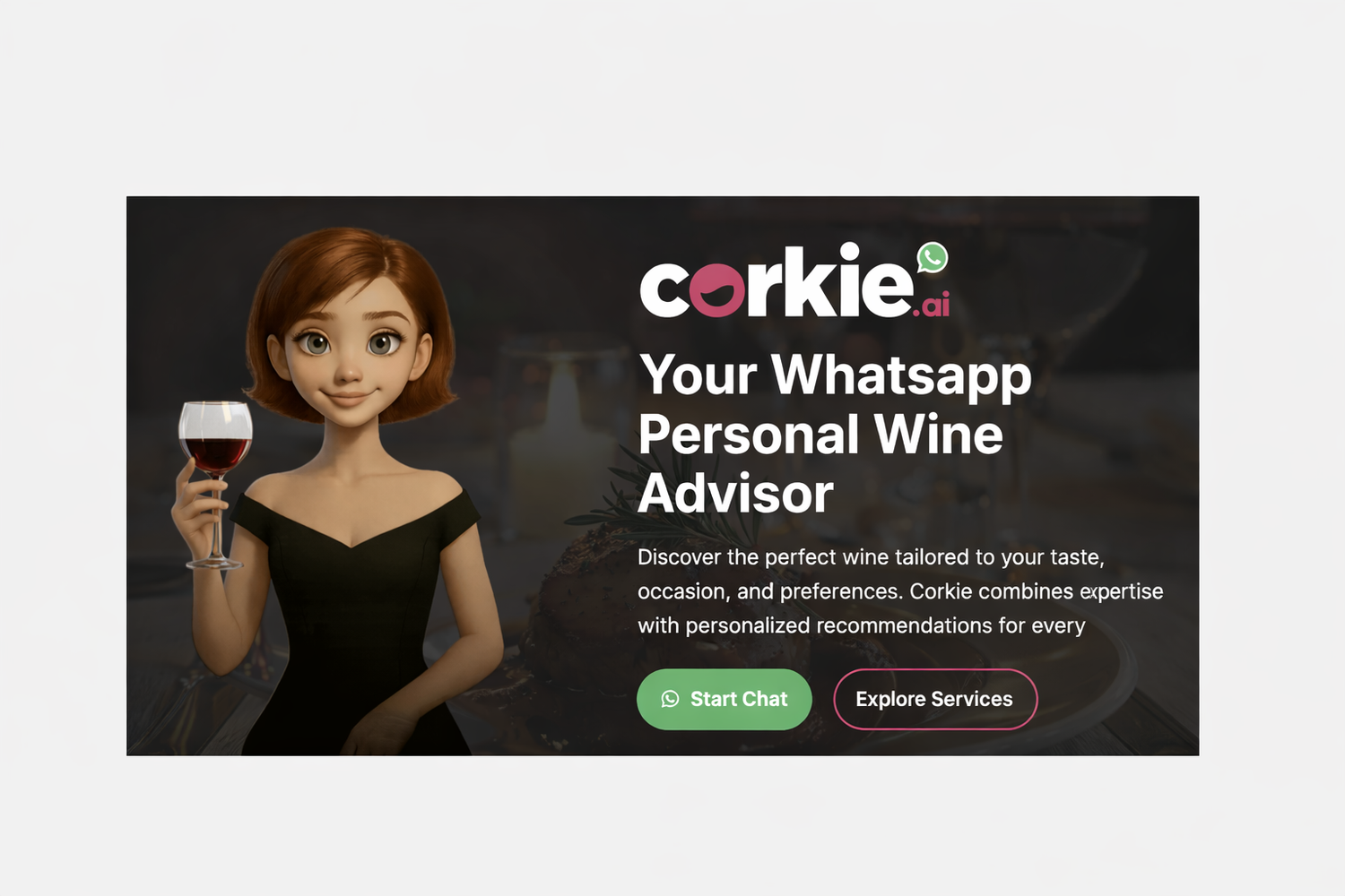 Get personalized wine recommendations via WhatsApp. Tell Corkie your preferences and discover new favorites.