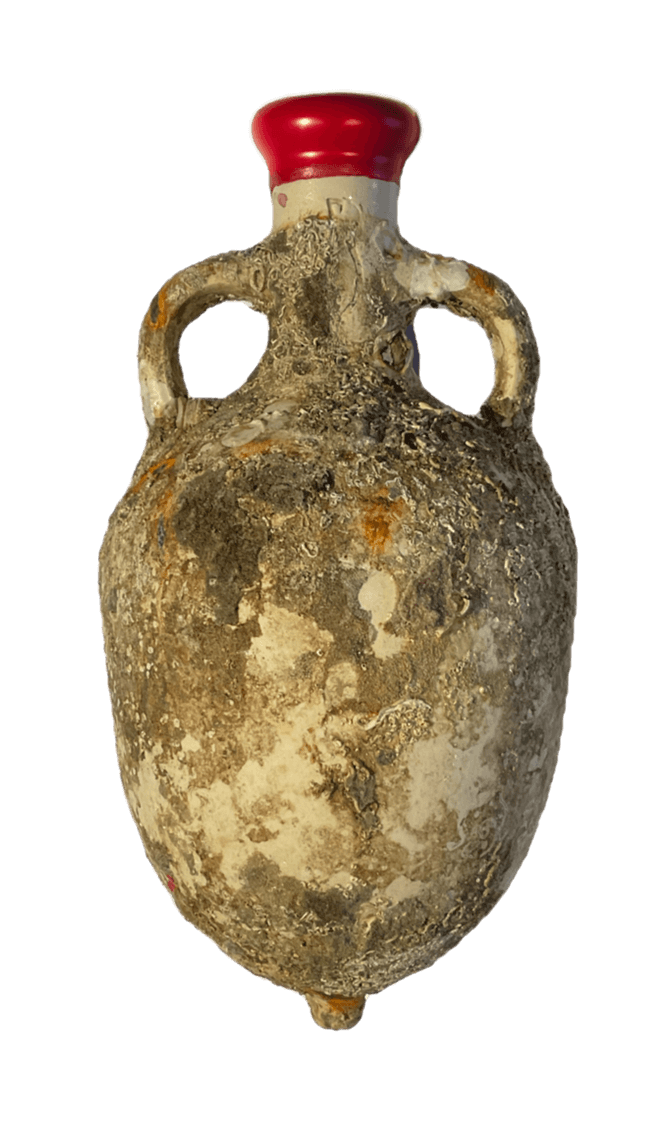 Uvas de viñedos centenarios. Fermentado y crianza en ánforas de barro. Enviado a 20 metros bajo el mar durante 11 meses en botella. Variedades: tempranillo, garnacha y mazuelo.