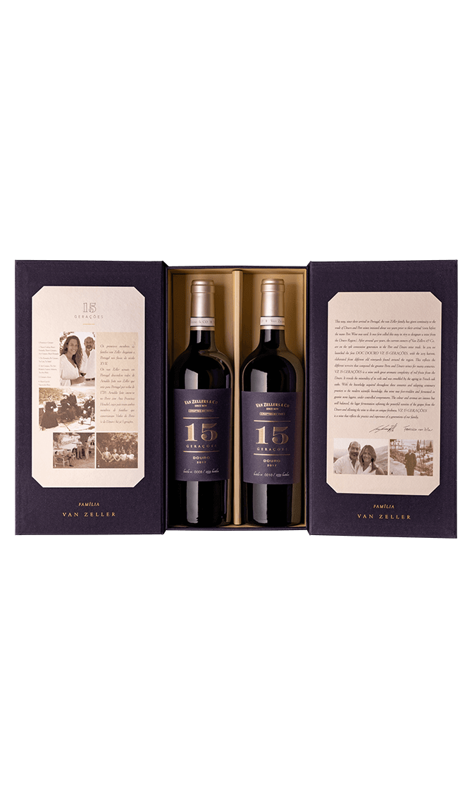 All the grapes for all our Douro red wines are foot crushed in old granite “lagares” for 24 hours and then ferment in 5.000 kgs stainless steel tanks between 8 and 12 days. After racking and pressing, the wine is then aged in new, one and two year old French oak 225 litres barriques until the bottling date stated on the label. Van Zellers & Co. 15 Gerações Douro Red is a wine with great aromatic complexity of red fruits from the Douro. 2015 has great grip and power, with an explosion of different red fruits, like raspberries, blackberries and cherries, and a smooth persistence for a delightful finish. It promises to age beautifully in bottle for many years.
